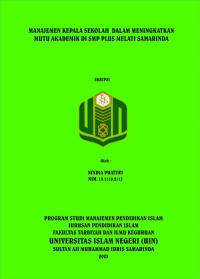Nindia Pratiwi. 2023. “Manajemen Kepala Sekolah Dalam Meningkatkan Mutu Akademik di SMP Plus Melati Samarinda”. Program Studi Manajemen Pendidikan Islam. Fakultas Tarbiyah dan Ilmu Keguruan, Universitas Islam Negeri Sultan Aji Muhammad Idris (UINSI) Samarinda. Penulis Skripsi di bimbing oleh Dra. Hj. Ananiah. M.M.Pd selaku pembimbing I dan Dr. Sri Susmiyati, S.Ag,M.Pd.I selaku pembimbing II.