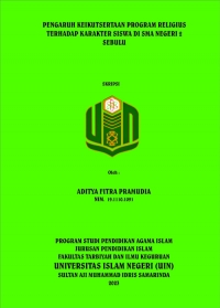 XMLAditya Fitra Pramudia, 2023 “Pengaruh Keikutsertaan Program Religius Terhadap Karakter Siswa di SMA Negeri 2 Sebulu”. Skripsi, Program Studi Pendidikan Agama Islam, Jurusan Pendidikan Islam, Fakultas Tarbiyah dan Ilmu Keguruan, Universitas Islam Negeri Sultan Aji Muhammad Idris (UINSI) Samarinda. Penelitian ini dibimbing oleh Ibu Dr. Hj. Robingatin, M.Ag dan Ibu Rega Armella, M.Pd.