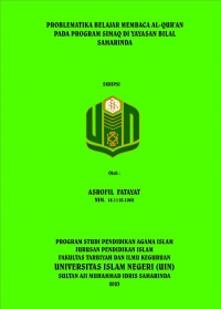 XMLAsrofil Fatayat. “Problematika Belajar Membaca Al-Qur’an pada Program Simaq di Yayasan Bilal Samarinda”, 2023. Skripsi, Program Studi Pendidikan Agama Islam (PAI), Jurusan Pendidikan Islam, Fakultas Tarbiyah dan Ilmu Keguruan (FTIK), Universitas Islam Negeri Sultan Aji Muhammad Idris Samarinda. Penelitian ini dibimbing oleh Ibu Dr. Hj. Noorthaibah, M.Ag sebagai pembimbing pertama dan Ibu Rumainur, M.Pd.I. sebagai pembimbing kedua.