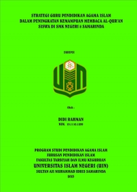 Didi Rahman, 2023. “Strategi Guru Pendidikan Agama Islam dalam Peningkatan Kemampuan Membaca Al-Qur’an Siswa di SMK Negeri 8 Samarinda”. Skripsi Program Studi Pendidikan Agama Islam, Fakultas Tarbiyah dan Ilmu Keguruan, Universitas Islam Negeri (UIN) Sultan Aji Muhammad Idris Samarinda. Di bawah bimbingan Bapak Dr. Zamroni, M.Pd, selaku dosen pembimbing I dan Ibu Khusnul Khotimah, M.Si, selaku dosen pembimbing II.