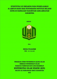 Erina Felianur, 2023. “Efektivitas Ice Breaking pada Pembelajaran Al- Qur'an Hadis bagi Peningkatan Motivasi Belajar Siswa di Madrasah Tsanawiyah Sabilarrasyad Samarinda”. Skripsi, Program Studi Pendidikan Agama Islam, Fakultas Tarbiyah dan Ilmu Keguruan, Universitas Islam Negeri Sultan Aji Muhammad Idris (UINSI) Samarinda. Dibimbing oleh Bapak Prof. Dr. Zurqoni, M.Ag sebagai pembibing I dan Ibu Dr. Siti Maulidah, S.Pd.I, M.Pd sebagai pembimbing II.