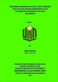 XMLFarah Anisah, 2023. “Pengaruh Penggunaan Aplikasi Canva Terhadap Hasil Belajar Sejarah Kebudayaan Islam MTs Asy-Syifa Balikpapan”. Skripsi, Program Studi Pendidikan Agama Islam, Fakultas Tarbiyah dan Ilmu Keguruan, Universitas Islam Negeri Sultan Aji Muhammad Idris (UINSI) Samarinda. Penelitian ini dibimbing oleh bapak Drs. H. Ahmad Riyadi, S.S., M. Hum sebagai pembimbing I dan bapak Wildan Saugi, M.Pd sebagai pembimbing II.