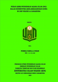 XMLPebria Fadilla Indah, 2023 “Peran Guru Pendidikan Agama Islam Dalam Membentuk Akhlakul Karimah Siswa di SMP Negeri 22 Samarinda”. Skripsi, Program Studi Pendidikan Agama Islam, Fakultas Tarbiyah dan Ilmu Keguruan, Universitas Islam Negeri Sultan Aji Muhammad Idris (UINSI) Samarinda. Penelitian ini di bimbing oleh Bapak Prof. Dr. Zurqoni, M. Ag dan Bapak Abdul Basith, M.Pd.