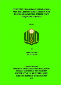 XMLEka Wahyu Nita, 2023 “Efektivitas Video Animasi Nussa Dan Rara Pada Hasil Belajar Tematik Peserta Didik Kelas 4 Di Sdit Istiqamah Balikpapan”. Program Studi Pendidikan Guru Madrasah Ibtidaiyah. Jurusan Pendidikan Madrasah, Fakultas Tarbiyah dan Ilmu Keguruan, Universitas Islam Negeri Sultan Aji Muhammad Idris Samarinda. Penulisan skripsi ini dibawah bimbingan Bapak Abdul Razak, M.Pd selaku pembimbing I dan Ibu Amalia Nur Aini, M.Pd selaku pembimbing II.
