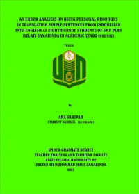 XMLAna Saripah, 2023. An Error Analysis on Using Personal Pronouns in Translating Simple Sentences from Indonesian into English at Eighth Grade Students of SMP Plus Melati Samarinda in Academic Years 2022/2023. Thesis, English Education Department. Teacher Training and Tarbiyah Faculty, State Islamic University of Sultan Aji Muhammad Idris Samarinda. Supervised by Mr. Dr. Bahrani, M,Pd as a the First Advisor and Mrs. Nadia Sya’ya,M.Pd.,M.TESOL as the Second Advisor.
