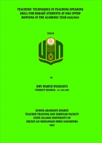 XMLDwi Wahyu Wijayanti. 2023. “Teachers’ Techniques in Teaching Speaking Skill For X Grade Students at SMA YPVDP Bontang in The Academic Year of 2022/2023” Thesis, English Language Education Study Program, Tarbiyah and Teacher Training Faculty, Sultan Aji Muhammad Idris State Islamic University of Samarinda. This research is under the guidance of Mrs. Dina Destari, S,S., M.Pd as the first advisor, and Mrs. Dra. Sitti Hadijah, M.Pd as the second advisor.