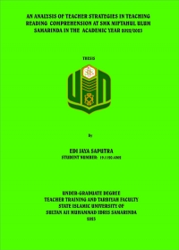 XMLEdi Jaya Saputra, “An Analysis of Teacher Strategies in Teaching Reading Comprehension at SMK Miftahul Ulum Samarinda in the Academic Year 2022/2023.” Thesis, English Education Department, Teacher Training and Education Faculty, State Islamic University Sultan Aji Muhammad Idris. This research is under the guidance of Mrs. Dina Destari, S.S., M.Pd. as the first advisor and Ms. Nadia.,M.Pd.,M.TESOL as the second advisor.