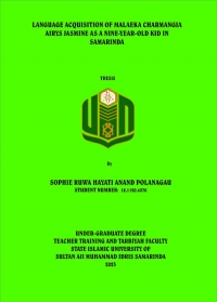 XMLSophie Ruwa Hayati Anand Polanagau. 2022. "Language Acquisition of Malaeka Charmangia Airys Jasmine As A Nine-Year-Old Kid In Samarinda." Thesis, English Education Study Programme, Tarbiyah and Teacher Training Faculty, State Islamic University Sultan Aji Muhammad Idris Samarinda. This research is under the guidance of Mrs. Dr. Dina Destari, M.Pd as the first advisor, and Mrs. Sitti Hadijah, M.Pd as the second advisor.