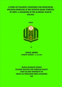 Zainal Abidin. 2023. “A Study on Teacher’s Strategies for Overcoming Speaking Problems at the Seventh Grade Students of SMPN 16 Samarinda in the Academic Year of 2022/2023” Thesis, English Education Department, Teacher Training and Education Faculty, Sultan Aji Muhammad Idris State Islamic University of Samarinda. This research is under the guidance of Mrs. Rostanti Toba, M.Pd as the first advisor, and Mrs. Nadia, M.Pd.,M.TESOL as the second advisor.