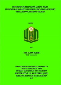 Nur-elham Doloh, 2023.Penerapan Pembelajaran Akhlak dalam Pembentukan Karakter Religius Siswa di Chareunsart Witaya School Thailand Selatan. Skripsi, Program Studi Pendidikan Agama Islam, Jurusan Pendidikan Islam, Fakultas Tarbiyah dan Ilmu Keguruan Universitas Islam Negeri Sultan Aji Muhammad Idris (UINSI) Samarinda. Penelitian ini dibimbing oleh Bapak Drs. Darwis, M.SI sebagai pembimbing I dan Bapak Abdul Basith, M.Pd. selaku pembimbing II