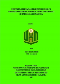 Desy Dwi Minarti, 2023. “Efektivitas Permainan Tradisional Engklek Terhadap Kemampuan Mengenal Angka Siswa Kelas I MI Darussalam Samarinda”. Skripsi, Program Studi Pendidikan Guru Madrasah Ibtidaiyah, Jurusan Pendidikan Madrasah, Fakultas Tarbiyah Dan Ilmu Keguruan, Universitas Islam Negeri (UIN) Sultan Aji Muhammad Idris Samarinda. Penelitian ini dibimbing oleh Bapak Abdul Razak, M.Pd selaku pembimbing I dan Ibu Nurwati M.Pd selaku pembimbing II .