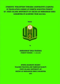 XMLMuhammad Yoga Fratama, 2023. Students’ Perception Towards Cooperative Learning in Translation Course at Fourth Semester Student of State Islamic University of Sultan Aji Muhammad Idris Samarinda in Academic Year 2023/2024. Thesis, Under Graduate Degree, English Education Study Programme, Tarbiyah and Teacher Training Faculty. State Islamic University Sultan Aji Muhammad Idris Samarinda. This thesis was under guidance Mr. Dr. H. Shafa, S.Pd.I., M. Pd as the first advisor and Ms. Widya Noviana Noor, M.Pd as the second advisor.