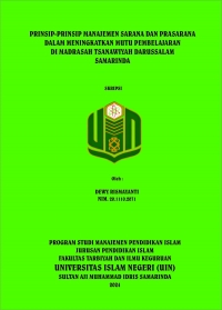 Dewy Rismayanti, 2024. Prinsip-Prinsip Manajemen Sarana dan Prasarana dalam Meningkatkan Mutu Pembelajaran di Madrasah Tsanawiyah Darussalam Samarinda. Skripsi Program Studi Manajemen Pendidikan Islam, Jurusan Pendidikan Islam, Fakultas Tarbiyah dan Ilmu Keguruan, Universitas Islam Negeri Sultan Aji Muhammad Idris (UINSI) Samarinda. Penelitian ini dibimbing oleh Bapak Dr. Husni Idris, M.Pd, selaku dosen pembimbing I dan Ibu Muthia Umi Setyoningrum, M.Pd selaku dosen pembimbing II. Latar belakang penelitian ini adalah masih terdapat pengelolaan sarana dan prasarana seperti penghapusan di madrasah dilakukan tanpa adanya konfirmasi sehingga tidak tercatat di berita acara. Maka dari itu pentingnya pelaksanaan prinsip-prinsip manajemen sarana dan prasarana tersebut guna mengatasi permasalahan pengelolaan sarana dan prasarana. Tujuan dari penelitian ini untuk mengetahui pelaksanaan prinsip-prinsip manajemen sarana dan prasarana di MTs Darussalam Samarinda berserta faktor pendukung dan penghambat. Jenis penelitian ini menggunakan penelitian lapangan (field research) dengan pendekatan kualitatif. Sumber data kepala madrasah, wakil kepala bidang sarana dan prasarana, guru, dan siswa. Teknik pengumpulan data yang digunakan observasi, wawancara, dan dokumentasi. Teknik analisis data menggunakan pengumpulan data, kondensasi data, penyajian data, dan penarikan kesimpulan. Teknik keabsahan data menggunakan triangulasi sumber dan teknik. Hasil penelitian menunjukkan bahwa Pelaksanaan prinsip manajemen sarana dan prasarana dalam meningkatkan mutu pembelajaran yang ada di Madrasah Tsanawiyah Darussalam Samarinda meliputi: a) Prinsip pencapai tujuan, sarana dan prasarana yang ada di madrasah sudah di siapkan dalam kondisi siap pakai jauh sebelum dimulai tahun ajaran baru, b) Prinsip efisiensi, perencanaan dilakukan dengan cermat melalui musyawarah bersama dengan memberikan usulan kebutuhan dalam kegiatan pembelajaran, c) Prinsip administratif, beberapa kegiatan pengelolaan sarana dan prasarana yang ada di madrasah beberapa sudah berjalan sesuai dengan peraturan dan standar sarana dan prasarana yang berlaku di madrasah, d) Prinsip kejelasan tanggung jawab, pengelolaan yang di lakukan masih dilakukan bersama-sama dengan kepala madrasah yang menjadi penanggung jawab utama, sehingga belum ada petugas khusus yang bertanggung jawab, e) Prinsip kekohesifan, pengelolaan sarana dan prasarana dilakukan dengan bersama sama dan di awasi langsung oleh kepala madrasah. Faktor pendukung dalam pelaksanaan prinsip manajemen sarana dan prasarana; adanya dukungan dari wali murid untuk menyediakan sarana dan prasarana untuk mendukung proses pembelajaran, tersedianya anggaran dana yang lumayan mencukupi yang berasal dari BOS dan IPP, adanya evaluasi terhadap penggunaan sarana dan prasarana yang kurang optimal. Faktor penghambat; keterlambatan guru dalam memberikan usulan, kearsipan yang masih dilakukan secara manual, pembelian barang tanpa adanya nota pembelian, penghapusan barang yang dilakukan tanpa adanya konfirmasi terlebih dahulu kepada wakil kepala bidang sarana dan prasarana.