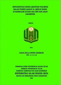 XMLSalsa Dilla Putri Chairani, 2024. “Implementasi Model Quantum Teaching Dalam Pembelajaran Al-Qur’an Hadis DI Madrasah Aliyah (MA) DDI Tani Aman Samarinda”, Skripsi, Program Strudi Pendidikan Agama Islam, Fakultas Tarbiyah dan Ilmu Keguruan, Universitas Islam Negeri Sultan Aji Muhammad Isris (UINSI) Samarinda. Peneliti dibimbing oleh Ibu Marniati Kadir, M.Pd.I selaku pembimbing I dan ibu Lely Salmitha, M.Pd selaku pembimbing II. Penelitian ini dilatar belakangi oleh masalah yang sering terjadi dalam proses pembelajaran ialah seorang guru yang belum bijaksana dalam memilih, mengoptimalkan dan menerapkan model pembelajaran sebagai komponen yang penting dari rencana adaptif pembelajaran. Sehingga peneliti memfokuskan proses pembelajaran pada mata pelajaran Al-Qur’an Hadis di MA DDI Tani Aman Samarinda. Berdasarkan latar belakang tersebut, maka muncul alasan untuk dilaksanakannya penelitian lebih lanjut terkait pengimplementasi model pembelajaran quantum teaching pada mata pelajaran al-qur`an hadis dengan penelitian yang berjudul “Implementasi Model Quantum Teaching Dalam Pembelajaran Al-Qur’an Hadis Di MA DDI Tani Aman Samarinda. Tujuan penelitian ini adalah untuk mendeskripsikan implementasi model quantum teaching dalam pembelajaran Al-Qur’an Hadis Di Madrasah Aliyah (MA) DDI Tani Aman Samarinda. Jenis penelitian ini adalah penelitian kualitatif dengan pengumpulan data. yang diperoleh dari observasi, wawancara, dan dokumentasi dalam memperoleh data yang lebih akurat. Adapun instrumen peneliti ialah, Guru Bidang Studi Al- Qur’an Hadis, dan beberapa peserta didik kelas X dan XI. Sumber data yang digunakan dalam penelitian ini terbagi menjadi dua yaitu: 1. Sumber data primer yang dilakukan dengan observasi dan wawancara dan 2. Sumber data sekunder yang berupa data buku, arsipp, RPP. Teknik analisis data yang digunakan ialah pengumpulan data, kodensasi data, penyajian data, danpenarikkan kesimpulan. Hasil penelitian didapatkan dari peneliti menunjukkan bahwa implementasi yang dilaksanakan adalah, a) Tumbuhkan, mengandung makna bahwa pada awal kegiatan pembelajaran guru harus berusaha menumbuhkan atau mengembangkan minat peserta didik untuk belajar. b) Alami, mengandung makna bahwa proses pembelajaran akan lebih bermakna jika siswa mengalami secara langsung pada materi yang diajarkan, c) Namai, mengandung bahwa penamaan adalah mengajarkan konsep, keterampilan berpikir dan strategi belajar, d) Demonstrasikan berarti bahwa memberi peluang pada peseta didik untuk menerjemahkan dan menerapkan pengetahuan peserta didik kedalam pembelajaran lain atau kedalam kehidupan peserta didik, e) Ulangi, berarti bahwa proses pengulangan dalam kegiatan pembelajaran dapat menumbuhkan rasa tahu dan yakin terhadap kemampuan peserta didik, f) Rayakan, berarti pemberianumpan balik yang positif kepada peserta didik atas keberhasilannya baik berupa pujian atau pemberian reward berupa hadiah.