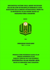Muhammad Suaib Komo, 2024. “Implementasi Metode Small Group Discussion Dalam Melatih Keterampilan Berbicara bahasa Asing Mahasiswa Kelas Khusus Internasional Prodi Pendidikan Agama Islam di Universitas Islam Negeri Sultan Aji Muhammad Idris Samarinda” Skripsi. Program Studi Pendidikan Agama Islam, Universitas Islam Negeri Sultan Aji Muhammad Idris Samarinda. Penelitian ini dibimbing oleh Drs. Darwis, M. SI sebagai pembimbing pertama dan Imroh Atul Musfiroh, M.Pd.I, S.Pd sebagai pembimbing kedua. Latar belakang penelitian ini adalah mahasiswa kelas khusus internasional masih belum menguasai bahasa asing sehingga muncul penerapan metode small group discussion sebagai upaya untuk melatih keterampilan berbicara bahasa asing mereka. Wawancara awal ditemukan bahwa di dalam kelas khusus internasional penggunaan bahasanya lebih banyak menggunakan bahasa Indonesia. Sehingga muncul keingintahuan implementasi metode small group discussion yang diterapkan untuk melatih keterampilan berbicara bahasa asing di dalam kelas khusus internasional UINSI Samarinda. Tujuan penelitian ini adalah untuk memberikan gambaran metode small group discussion dalam melatih keterampilan berbicara mahasiswa. Jenis penelitian ini adalah penelitian kualitatif dengan sumber data dalam penelitian ini adalah mahasiswa kelas khusus internasional yang secara aktif dalam kegiatan belajar mengajar sebanyak 58 mahasiswa serta pengelola KKI. Teknik pengumpulan data dalam penelitian ini adalah wawancara, observasi, dan dokumentasi. Teknik analisis data meliputi kondensasi data, penyajian data dan penarikan kesimpulan. Uji keabsahan data dilakukan dengan triangulasi sumber dan triangulasi teknik. Hasil penelitian ini adalah sebagai berikut: (1) Implementasi metode small group discussion dalam melatih keterampilan berbicara bahasa asing dalam perkuliahan mahasiswa KKI UINSI Samarinda dilaksanakan dengan cara membagi kelas menjadi kelompok kecil, mahasiswa diberikan tugas dan memaparkan tugas yang diberikan tiap kelompok, pada penjabaran tugas mahasiswa menggunakan pencampuran ketiga bahasa yakni bahasa Indonesia-Arab-Inggris; (2) Faktor pendukung dari implementasi metode ini adalah kualifikasi dosen yang terampil dalam berbicara bahasa asing, peran dukungan dosen yang menerapkan metode small group discussion agar mahasiswa terbiasa berbahasa asing cukup baik, motivasi mahasiswa agar tampil lebih berani sehingga muncul kepercayaan diri dan kemauan untuk berbicara bahasa asing saat melakukan diskusi dan presentasi, lingkungan yang mendukung kegiatan belajar mengajar menggunakan metode small group discussion serta kebijakan kampus yang menetapkan peraturan dan faktor penghambat adanya kelonggaran pada ketetapan berbahasa, daya manusia baik dosen dan mahasiswa yang tidak menerapkan bahasa asing saat kegiatan belajar mengajar dan hanya menerapkan sesi diskusi berbahasa Indonesia.