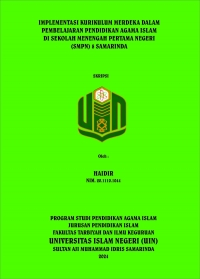 Haidir, 2024. Implementasi Kurikulum Merdeka pada Pembelajaran PAI di Sekolah Menengah Pertama (SMPN) 8 Samarinda, Skripsi. Program Studi Pendidikan Agama Islam, Jurusan Pendidikan Islam, Fakultas Tarbiyah dan Ilmu Keguruan, Universitas Islam Negeri (UIN) Sultan Aji Muhammad Idris Samarinda. Penelitian ini dibimbing oleh Prof. Dr. Muhammad Nasir, M. Ag dan Rabiatul Adawiyah, M. Pd. Latar belakang penelitian ini adalah proses pengimplementasian kurikulum merdeka khususnya dalam pembelajaran PAI di SMPN 8 Samarinda. Penelitian ini mengkaji mengenai sejauh mana proses penerapan kurikulum merdeka dilaksanakan oleh pihak sekolah sejak tahun ajaran 2022/2023 sebagai transisi dari kurikulum 2013. Kemudian, penelitian ini berisi deskripsi beserta fakta mendalam pada setiap proses dan tahapan perencanaan, pelaksanaan, evaluasi, dari seluruh pengimplementasian kurikulum ini. Berdasarkan hal tersebut, tujuan penelitian ini untuk menganalisis bagaimana implementasi kurikulum merdeka pada pembelajaran Pendidikan Agama Islam di Sekolah Menengah Pertama Negeri 8 Samarinda beserta faktor pendukung dan penghambatnya. Jenis penelitian ini termasuk deskriptif kualitatif dengan teknik pengambilan datannya melalui observasi, wawancara, dan dokumentasi. Sumber data penelitian ini ialah koordinator waka kurikulum, guru Pendidikan Agama Islam, dan siswa kelas VII. Teknik analisis dilakukan dengan menggunakan kondensasi data, penyajian data, dan penarikan kesimpulan. Uji keabsahan data menggunakan uji kreadibilitas yang terdiri dari triangulasi sumber dan teriangulasi teknik. Hasil yang didapatkan dari penelitian ini ialah implementasi kurikulum merdeka pada pembelajaran Pendidikan Agama Islam di Sekolah Menengah Pertama Negeri 8 Samarinda dilakukan dengan tiga (3) tahapan, yaitu 1) Perencanaan, yakni perencanaan pada aspek material berupa menyiapkan modul ajar, program tahunan, dan program semester yang merujuk pada KOSP, serta perencanaan CP, TP, ATP. 2) Pelaksanaan, guru melakukan proses pembelajaran yang berdiferensiasi, dan pelaksanaan, Program Projek Penguatan Profil Pelajar Pancasila (P5). 3) Evaluasi, guru memberikan asesmen kepada siswa, disetiap awal pembelajaran, di tengah pembelajaran dan diakhir pembelajaran, serta pelaksanaan tes disetiap tengah dan akhir semester serta terdapat evaluasi kelancaran membaca Al-Qur’an dan hafalan-hafalan dalil. Faktor pendukung diantaranya ialah seluruh pihak sekolah, orang tua siswa, dan lingkungan sekitar. Sedangkan faktor penghambatnya ialah ada di tingkat satuan Pendidikan dan di dalam pembelajaran di kelas.