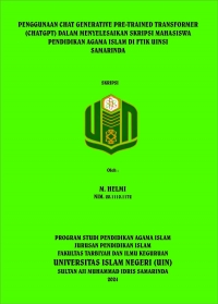 XMLM. Helmi, 2024. "Penggunaan Chat Generative Pre-Trained Transformer (ChatGPT) dalam Penyelesaian Skripsi Mahasiswa Pendidikan Agama Islam di FTIK UINSI Samarinda". Skripsi, Program Studi Pendidikan Agama Islam, Fakultas Tarbiyah dan Ilmu Keguruan, Universitas Islam Negeri Sultan Aji Muhammad Idris Samarinda. Penelitian ini dibimbing oleh Dr. Bahrani M.Pd dan Maulida Ulfa Hidayah, M.Pd. Penelitian ini dilatar belakangi kenyataan penggunaan ChatGPT sebagai AI, bahasa yang banyak digunakan dalam penyelesaian tugas mahasiswa, observasi awal yang dilakukan peneliti dengan melihat presentasi kelulusan mahasiswa yang hampir sama pada angkatan 2018 dan 2019 dan banyaknnya mahasiswa 2021 telah melaksanakan seminar proposal. Sedangkan tujuan penelitian ini untuk mengetahui dampak ChatGPT dalam Penyelesaian Skripsi Mahasiswa PAI di FTIK UINSI Samarinda serta mengetahui faktor negatif dan positif ChatGPT Dalam Penyelesaian Skripsi Mahasiswa PAI FTIK UINSI Samarinda. Penelitian ini menggunakan metode kualitatif dengan pendekatan studi kasus. Data dikumpulkan dari dosen dan mahasiswa PAI. Teknik pengambilan sampel menggunakan snowball sampling sedangkan Teknik pengumpulan data meliputi observasi, wawancara, dan dokumentasi. Untuk memastikan keabsahan data, dilakukan triangulasi sumber dan teknik. Proses analisis data melalui penyederhanaan data, penyajian hasil, dan penarikan simpulan dengan menggunakan Teori Miles and Huberman. Hasil penelitian ini menunjukkan bahwa Penggunaan ChatGPT dapat membantu mahasiswa FTIK UINSI Samarinda dalam menyelesaikan tugas akademik, khususnya skripsi, dengan memfasilitasi pencarian ide, informasi, meningkatkan kualitas konten dan parafrase teks. Selain itu, ChatGPT juga dianggap mampu memotivasi mahasiswa, serta meningkatkan efisiensi dalam proses penulisan, namun tetap bergantung pada kemampuan mahasiswa dalam mengolah informasi yang dihasilkan. Beberapa dosen mengakui bahwa ChatGPT membantu mahasiswa, tetapi tetap menekankan pentingnya keterlibatan aktif mahasiswa dalam proses revisi dan pengembangan skripsi. Kecepatan penyelesaian skripsi tetap bergantung pada inisiatif mahasiswa dalam merevisi dan memperbaiki tulisannya. Meskipun ChatGPT memiliki beberapa kelebihan, tetap ada faktor negatif terkait penggunaannya seperti kualitas informasi yang dihasilkan oleh ChatGPT tidak relevan dengan artikel ilmiah, menurunkan kemampuan berfikir kritis serta kurang relevan saat digunakan untuk mencari informasi yang membutuhkan kreativitas dan empati.