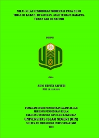 XMLAdni Erfita Safitri, 2024. “Nilai-nilai pendidikan Moderasi Pada Buku Tidak di Ka’bah, di Vatikan, Atau Tembok Ratapan, Tuhan Ada Di Hatimu”. skripsi, Jurusan Pendidikan Islam Fakultas Tarbiyah dan Ilmu Keguruan Universitas Islam Negeri Sultan Aji Muhammad Idris Samarinda. Penelitian ini dibimbing oleh Drs. H. M. Said Husin, MA dan Maulida Ulfa Hidayah, M.Pd. Kemajemukan atau keberagaman dalam masyarakat dapat memperkaya kehidupan sosial dengan berbagai perspektif, pengalaman, dan ide yang berbeda. Ketika berbagai kelompok atau individu dari latar belakang yang berbeda bekerja sama, mereka bisa menciptakan solusi yang lebih kreatif dan efektif terhadap masalah. Sinergi ini memungkinkan pengembangan inovasi dan pemahaman yang lebih mendalam tentang berbagai aspek kehidupan, serta mendorong rasa saling menghormati dan toleransi. Namun, pencapaian hasil optimal dari kemajemukan memerlukan usaha bersama untuk memahami, menghargai, dan bekerja sama dengan baik. Demi mencegah konflik antar agama, perlu adanya peningkatan pemahaman terhadap berbagai realitas keberagaman dalam masyarakat saat ini. Maka, peneliti juga tertarik untuk melakukan penelitian tentang “Nilai-nilai Pendidikan Moderasi Pada Buku Tidak di Ka’bah di Vatikan Atau Tembok Ratapan Tuhan Ada Di Hatimu, Karya Husein Ja’far Al-Hadar”. Penelitian tersebut bertujuan untuk mengidentifikasi nilai-nilai pendidikan moderasi pada buku Tidak di Ka’bah di Vatikan Atau Tembok Ratapan Tuhan Ada Di Hatimu Karya Husein Ja’far Al-Hadar. Penelitian ini merupakan sebuah penelitian yang didasarkan pada referensi pustaka (library research). Menggunakan metode analisis isi (content analysist) untuk menganalisis data, dengan menggunakan sumber data primer berupa buku Tidak di Ka’bah di Vatikan Atau Tembok Ratapan Tuhan Ada di Hatimu, serta sumber data sekunder berupa jurnal, artikel, literature, internet, atau sumber lain yang relevan. Dari hasil penelitian tersebut, dapat ditarik kesimpulan bahwa buku tersebut mengandung nilai-nilai pendidikan moderasi yaitu (1) Tasamuh (toleransi), (2) I’tidal (lurus dan tegas), (3) Tawassth (pertengahan), (4) tawazun (berkeseimbangan), (5) syura (musyawarah), (6) qudwatiyah (keteladanan), (7) tahadhdhur (berkeadaban), (8) musawah (kesetaraan), (9) tatawur wa ibtikar (dinamis dan inovatif). Sehingga buku ini dapat dijadikan media untuk menambah wawasan terkait cara bertoleransi dan merangkul sesama dalam hal kebaikan, dan juga dapat membuka pikiran terkait moderasi beragama dari sudut pandang islam.
