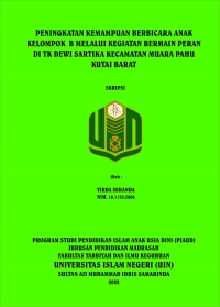 Virda Miranda, 2022. Peningkatan Kemampuan Berbicara Anak Kelompok B Melalui Kegiatan Bermain Peran di TK Dewi Sartika Kecamatan Muara Pahu Kutai Barat. Program Studi Pendidikan Islam Anak Usia Dini, Jurusan Pendidikan Madrasah, Fakultas Tarbiyah dan Ilmu Keguruan, Universitas Islam Negeri Sultan Aji Muhammad Idris Samarinda. Penelitian ini dibimbing oleh Ibu Dr. Hj. Robingatin, M. Ag selaku pembimbing I dan Ibu Dr. Siti Nor Asiah, SE., M. Pd selaku pembimbing II.