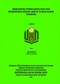 XMLNur Halimah, 2023. Problematika Pembelajaran Pada Anak Berkebutuhan Khusus (ABK) di TK Ukan Hasupa Samarinda. Skripsi, Program Studi Pendidikan Islam Anak Usia Dini, Jurusan Pendidikan Madrasah, Fakultas Tarbiyah dan Ilmu Keguruan, Universitas Islam Negeri Sultan Aji Muhammad Idris Samarinda. Penelitian ini dibimbing oleh ibu Mujahidah S.Ag,S.Psi,M.Si,CH selaku pembimbing I dan ibu Amalia Nur Aini M.Pd selaku pembimbing II. Latar belakang penelitian adalah munculnya permasalahan yang dihadapi guru ketika berhadapan dengan anak berkebutuhan khusus yang berdampak pada pelaksanaan pembelajaran yang kurang efektif. Beberapa permasalahan dalam pembelajaran yang belum bisa terpecahkan, seperti kondisi anak berkebutuhan khusus yang memiliki masalah dalam berbagai aspek, baik dari segi psikis, mental, emosional dan sosial. Tujuan dari penelitian ini adalah untuk mengetahui problematika pembelajaran pada anak berkebutuhan khusus (ABK) di TK Ukan Hasupa Samarinda. Jenis penelitian ini adalah kualitatif dengan menggunakan pendekatan studi kasus. Sumber data yang digunakan yaitu sumber data primer dan sekunder. Teknik pengumpulan data yang digunakan yaitu observasi, wawancara, dan dokumentasi. Teknik keabsahan data yang digunakan dalam penelitian ini adalah triangulasi sumber, triangulasi teknik, dan triangulasi waktu dengan menggunakan model yang digunakan oleh Miles dan Huberman, dan prosesnya dimulai dari reduksi data, penyajian data, dan penarikan kesimpulan atau verifikasi. Berdasarkan hasil analisis data, dapat disimpulkan bahwa: jenis-jenis anak berkebutuhan khusus yaitu gangguan komunikasi dan interaksi sosial (sindrom aspenger) dan gangguan keterlambatan berbicara (speech delay), problematika pembelajaran yang dihadapi anak berkebutuhan khusus yaitu: 1. konteks pembelajaran sama dengan anak non disabilitas, 2. tidak ada materi khusus yang dibuat oleh guru untuk anak berkebutuhan khusus, 3. mudah lupa dan lamban dalam menerima materi pembelajaran apapun yang diberikan oleh guru, solusi untuk mengatasi problematika anak berkebutuhan khusus yang terjadi yaitu: 1. Menyediakan, 2. guru pendamping khusus untuk anak berkebutuhan khusus ketika pembelajaran berlangsung, guru menyediakan materi khusus untuk anak berkebutuhan khusus, 3. menyediakan metode pembelajaran yang memperkuat keterampilan anak dan strategi pembelajaran yang mendukung kebutuhan anak tersebut.