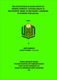 XMLArif Rahmani, 2023. "The Effectiveness of Using Spotify to Improve Students’ Listening ability at the Eleventh Grade Students’ of SMKN 4 Samarinda in Academic Year 2023/2024". Undergraduate Thesis, Department of English Education, Faculty of Education and Teacher Training, State Islamic University Sultan Aji Muhammad Idris Samarinda. This research was supervised by Mrs. Rostanti Toba, M.Pd as the primary advisor and Mrs. Widya Noviana Noor, M.Pd as the secondary advisor. Effective teaching and learning rely not only on the proficiency of educators and learners but also on the suitability of instructional media.. This research aims to determine the effectiveness of improving the listening ability of students’ at SMKN 4 Samarinda by using the Spotify application as a teaching media. The research design employed is a quantitative Pre-Experimental One Group Pre-Test Post-Test design. The researcher analyzed the data using SPSS 25. The instrument used in this research is a test, consisting of 21 questions tested for validity. The population and sample of this research are the eleventh-grade students’ of the Vocational High School 4 Samarinda, totalling 21 students’. The results of this research demonstrate that the use of the Spotify application can enhance students’ listening abilities. This is evidenced by the average scores of students’ in the pre-test and post-test. The research results show that the Spotify application significantly improves students’ listening ability after the intervention. The average score increased from 57.3 in the pre-test to 76.1 in the post-test. The t-test results indicate that the values of the pre-test and post-test are smaller than α (0.00 < 0.05). Based on these results, it can be concluded that the null hypothesis (Ha) is accepted, meaning that the Spotify application can enhance students’ listening ability in English language learning at SMKN 4 Samarinda.