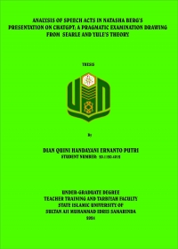 XMLDian Quini Handayani Ernanto Putri, 2024. “Analysis of Speech Acts in Natasha Berg's Presentation on Chatgpt: A Pragmatic Examination Drawing From Searle And Yule's Theory”. Thesis, English Education Department. Teacher Training and Education Faculty. State Islamic University Sultan Aji Muhammad Idris (UINSI) Samarinda. Supervisor by Mrs. Dina Destari, M. Pd as a first supervisor, and Ms. Anis Komariah, M. Pd as a second supervisor. As social beings who depend on the relationships of others, human needs communication. In social interactions, not least in education, language is primarily used as a tool. Individuals who experience language difficulties will have difficulty in conveying their thoughts or ideas to others. As a result, communication becomes less than optimal and sometimes fails. In this case, communication is not just a matter of one-way message delivery, but also involves the exchange of mutually understood contexts so that two-way communication occurs. To get the context of communication and become a competent communicator, pragmatics is necessary and one of the crucial ideas in pragmatics is the concept of speech acts. This research was conducted with the aim of knowing the illocutionary speech acts and knowing the most frequently used acts contained in Natasha Berg's speech about ChatGPT using Searle and Yule's theory. This research used qualitative approach and content analysis as a research method. To collect the data, the researcher used documentary technique. Data collection was carried out by watching the video of Natasha Berg’s TEDx Talks and taking certain notes of the speaker's statement from the transcript of Natasha Berg’s speech. There were 62 utterances that were analyzed. Based on the results, it showed that Natasha Berg’s speech at TEDx Talks contained five types of illocutionary acts using Searle and Yule’s Theory. There were assertives, directives, commisives, expressives, and declaratives. Following the analysis of illocutionary act of Natasha Berg's speech, the results presented that they were 62 speech utterances contained illocutionary acts. They were thirty-five assertives (56,45%), ten directives (16.12%), nine commisive (14.51%), seven expressive (11.29%) and one declarative (1.61%). The findings indicated that assertive was the most frequently seen illocutionary act during the speech since it provided the audience with factual information related to the facts of the use of ChatGPT in the school environment and its implications for students based on study and also field facts.