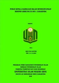 XMLMely Nia Safitri, “Peran Kepala Madrasah Dalam Mendisiplinkan Rumpun Guru PAI MIN 1 Samarinda”. Skripsi. Program Studi Manajemen Pendidikan Islam (MPI), Jurusan Pendidikan Islam, Fakultas Tarbiyah dan Ilmu Keguruan (FTIK), Universitas Islam Negeri Sultan Aji Muhammad Idris (UIN SI) Samarinda. Penelitian ini dibimbing oleh bapak Dr. Husni Idris, M.Pd dan bapak Muhammad Khairul Rijal, M.Pd.