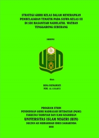 Rina Fatmawati, 2022. “Strategi Guru Kelas Dalam Menerapkan Pembelajaran Tematik Pada Siswa Kelas III di SDI Hasaniyah Nahdlatul Wathan Tenggarong Seberang”. Skripsi, Program Studi Pendidikan Guru Madrasah Ibtidaiyah, Jurusan Pendidikan Madrasah, Fakultas Tarbiyah dan Ilmu Keguruan, Universitas Islam Negeri Sultan Aji Muhammad Idris Samarinda. Penelitian ini dibimbing oleh bapak Drs. Khairul Slaeh, M.Ag selaku pembimbing I dan bapak Wildan Saugi, M.Pd selaku pembimbing II.