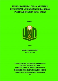Arman Noor Efendy, 2022. Peranan Guru PAI Dalam Mengatasi Efek Negtaif Media Sosial di Kalangan Peserta Didik MAN Kutai Barat. Skripsi, Program Studi Pendidikan Agama Islam, Juruan Pendidikan Islam, Fakultas Tarbiyah dan Ilmu Keguruan Universitas Islam Negeri (UIN) Sultan Aji Muhammad Idris Samarinda. Peneliti ini dibimbing oleh Bapak Drs. Darwis, M.S.I selaku pembimbing I dan Ibu Indriana Rahmawati, S.Psi, M.Pd selaku pembimbing II.