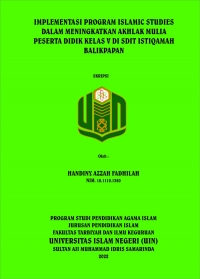 XMLHandiny Azzah Fadhilah, 2022. Implementasi Program Islamic Studies dalam Meningkatan Akhlak Mulia Peserta Didik Kelas V di SDIT Istiqamah Balikpapan. Skripsi, Program Studi Pendidikan Agama Islam, Jurusan Pendidikan Islam, Fakultas Tarbiyah dan Ilmu Keguruan Universitas Islam Negeri Sultan Aji Muhammad Idris (UINSI) Samarinda. Penelitian ini dibimbing oleh Bapak Drs. H.M. Said Husin, MA dan Ibu Amalia Nur Aini, M.Pd.