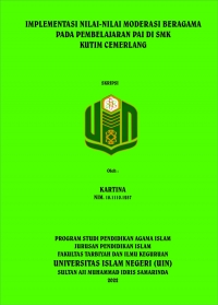 Kartina, 2022. “Implementasi Nilai-Nilai Moderasi Beragama Pada Pembelajaran PAI di SMK Kutim Cemerlang”. Skripsi, Program Studi Pendidikan Agama Islam (PAI), Jurusan Pendidikan Islam, Fakultas Tarbiyah Dan Ilmu Keguruan (FTIK), Universitas Islam Negeri Sultan Aji Muhammad Idris Samarinda (UINSI Samarinda). Penelitian ini di Bimbing Oleh Bapak Dr. Iskandar, M. Ag. dan Bapak H. Susanto, Lc. M. Pd. I.