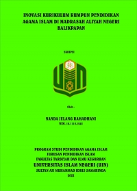 Nanda Jelang Ramadhani, 2022 “Inovasi Kurikulum Rumpun Pendidikan Agama Islam di Madrasah Aliyah Negeri Balikpapan”. Skripsi, Program Studi Pendidikan Agama Islam (PAI), Jurusan Pendidikan Islam , Fakultas Tarbiyah dan Ilmu Keguruan, Universitas Islam Negeri (UIN) Sultan Aji Muhammad Idris Samarinda. Penelitian ini dibimbing oleh Bapak Prof. Dr. Muhammad Nasir, M.Ag sebagai pembimbing pertama, dan Ibu Zakiyah Ulfah, M.Pd sebagai pembimbing kedua.