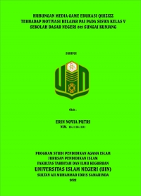 XMLErin Novia Putri, 2022. “Hubungan Media Game Edukasi Quizizz Terhadap Motivasi Belajar PAI Pada Siswa Kelas V Sekolah Dasar Negeri 009 Sungai Kunjang”. Pelaksanaan penelitian dibimbing oleh Dr. Husni Idris, M.Pd sebagai pembimbing I dan Dr. Agus Setiawan, M.Pd.I pembimbing II.
