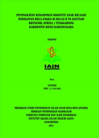 Lestari, 2021, “Peningkatan kemampuan kognitif melalui permainan bola angka di Kelas B Tk Aisyiyah Bustanul Athfal 3 Tenggarong Kabupaten Kutai Kartanegara”skripsi Program Studi Pendidikan Islam Anak Usia Dini, Jurusan Pendidikan Madrasah, Fakultas Tarbiyah dan Ilmu Keguruan, Institut Agama Islam Negeri (IAIN) Samarinda. Penelitian ini di bawah bimbingan Dra. Hj. Ananiah, M. M. Pd dan Dr. Siti Nor Asiah, M. Pd.