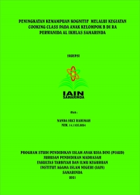 Nanda Suci Rahimah, 2021. Peningkatan Kemampuan Kognitif Melalui Kegiatan Cooking Class Pada Kelompok B Di RA Perwanida Al Ikhlas Samarinda. Skripsi Program Studi Pendidikan Islam Anak Usia Dini, Jurusan Pendidikan Madrasah, Fakultas Tarbiyah dan Ilmu Keguruan, Institut Agama Islam Negeri (IAIN) Samarinda. Penelitian ini dibimbing oleh Drs. Ahmad Riyadi, S.S., M.Hum dan Nurwati, M.Pd.