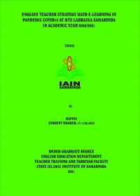 XMLRafina, 2021. “English Teachers’ Strategy Used in E-Learning in Pandemic COVID19 At Mts Labbaika Samarinda in Academic Year 2020/2021”. Undergraduated Degree Thesis, English Education Department, Teacher Training and Tarbiyah Faculty, State Islamic University Sultan Aji Muhammad Idris Samarinda. This research is under guidance of Dr. Bahrani, M. Pd as Advisor I and Dra, Sitti Khadijah, M. Pd as Advisor II.