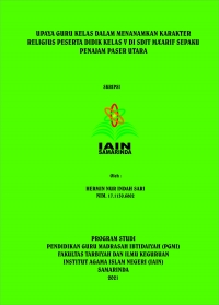 Hermin Nur Indah Sari 2021. “Upaya Guru Kelas Dalam Menanamkan Karakter Religius Peserta didik Kelas V di SDIT Ma’arif Sepaku Penajam Paser Utara”. Skripsi, jurusan Pendidikan Madrasah, Fakultas Tarbiah Dan ilmu Keguruan, Institut Agama Islam Negeri (IAIN) Samarinda”. Penelitian ini dibimbing oleh Drs. Khairul Saleh, M.Pd selaku pembimbing I dan Saipul Hadi, M.Pd.I selaku pembimbing II.