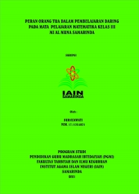 XMLSurayawati, 2021. “Peran Orangtua dalam pembelajaran daring pada mata pelajaran matematika kelas III di MI Al-Muna Samarinda”. Skripsi, Program studi Pendidikan Guru Madrasah Ibtidaiyah, Jurusan Pendidikan Madrasah, Fakultas tarbiyah dan Ilmu Keguruan, Universitas Negeri Sultan Aji Muhammad Idris Samarinda (UINSI)”. Dibimbing oleh Marniati Kadir M. Pd selaku pembimbing I dan Siti Nasiah M. Pd selaku pembimbing II.