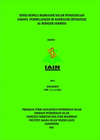 Latar belakang penlitian ini adalah Terkait sarana pembelajaran yang ada di Madrasah Ibtidaiyah Al-Hidayah Samboja antara lain sarana penunjang pembelajaran belum sepenuhnya berada dalam kondisi yang memadai. Hal ini dapat dilihat dari segi kualitas dan kuantitas sarana yang belum memadai misalnya kurangnya media pembelajaran seperti alat peraga. Penelitian ini bertujuan untuk mengetahui upaya yang dilakukan oleh kepala madrasah dalam pengelolaan sarana pembelajaran di madrasah ibtidiyah Al-Hidayah Samboja.