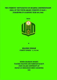 XMLKHAIRUN NIKMAH, 2022. The student’s Difficulties on Reading Comprehension Skill of the Tenth-grade Students in MAN 1 Samarinda in Academic Year 2021/2022. Thesis, English Education Department, Teacher Training and Tarbiyah Faculty, Sultan Aji Muhammad Idris Islamic University of Samarinda. This research is under the guidance of Mr Dr. Umar Fauzan, M.pd. as the first advisor and Mrs Dra. Sitti Hadijah, M.Pd as the second advisor.