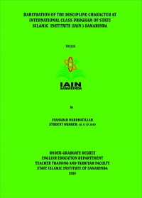 XMLSyahadah Mardhatillah, 2020. “Habituation of the Discipline Character at International Class Program of State Islamic Institute (IAIN) Samarinda”.Under Graduate Degree, Thesis, Islamic Education, Teacher Training and Tarbiyah Faculty, State Islamic Institute of Samarinda. This thesis was under guidance Dr. H. Mukhammad Ilyasin, M. Pd as the first advisor and Dr. Robingatin, M. Ag as the second advisor.