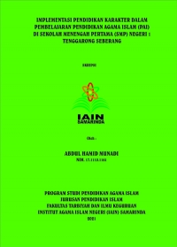 Latar belakang peneliti ini adalah dalam penerapan disekolah, pendidikan karakter sebenarnya sudah lama di implementasikan dalam pembelajaran di sekolah-sekolah khususnya dalam pembelajaran pendidikan agama islam, namun pendidikan karakter belum optimal. Itu karena pendidikan karakter bukanlah sebuah proses menghapal materi pembelajaran dan pelatihan soal saja. Pendidikan karakter yang harus didapat antara manusia dan allah seperti menjalankan ketaatan ibadah, puasa dan zakat, bersikap jujur, saling menghormati, menghargai sesama orang tua, guru dan teman sejawat. Yang menjadi permasalahan banyak sekolah yang belum mengimplementasikan pendidikan karakter dalam pembelajaran pendidikan agama islam, pembelajaran pai hanya didapat disekolah dalam 1 minggu 2 jam pelajaran saja maka tujuan penelitian ini untuk mengetahui implementasi pendidikan karakter dalam pembelajaran pendidikan agama islam di sekolah SMPN 1 Tenggarong Seberang.