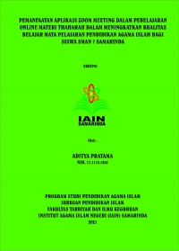 Aditya Pratama, 2021. “Pemanfaatan Aplikasi Zoom Meeting dalam Pembelajaran Online Materi Thaharah dalam meningkatkan kualitas belajar Mata Pelajaran Pendidikan Agama Islam bagi Siswa SMAN 7 Samarinda”. Penelitian ini dibimbing oleh bapak Drs. Darwis, M.SI dan ibu Amalia Nur Aini, M. Pd.