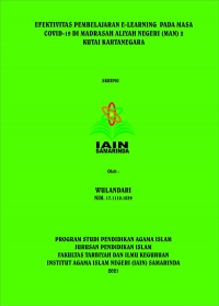 XMLWulandari, 2021. Efektivitas Pembelajaran E-Learning pada Masa Covid-19 di Madrasah Aliyah Negeri (MAN) 2 Kutai Kartanegara. Skripsi, Jurusan Pendidikan Islam Fakultas Tarbiyah dan Ilmu Keguruan Institut Agama Islam Negeri (IAIN) Samarinda. Penelitian ini dibimbingan oleh Dr. Muchammad Eka Mahmud, M.Ag., dan Dr. Ity Rukiyah, M.Si.